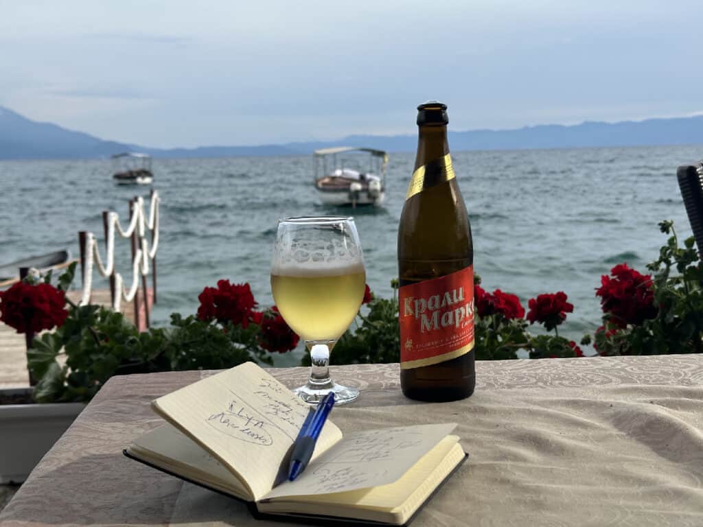 De sfeer in Progradec is dorps en gezellig. Frank zegt dat Pogradec “het Blankenberge van de jaren vijftig” is. Ik vind het geweldig. Op de ‘dijk’ zie je veel oudere mensen. In een wat aftands ogende speeltuin houden grootouders hun kleinkinderen in het oog. De kelners zijn één en al vriendelijkheid voor buitenlanders – wat ons te denken geeft over hoe wij in eigen land soms mensen uit andere landen ontvangen – en bij het minste oogcontact knikt iedereen ons goedendag toe.